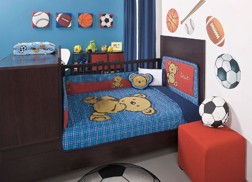 "Baby Boy Red Blue Little Bear Crib Bedding Set 6 Pcs" Overview